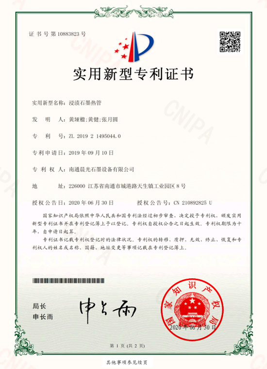 实用新型专利 :浸渍石墨热管 专利号:ZL 2019 2 1495044.0