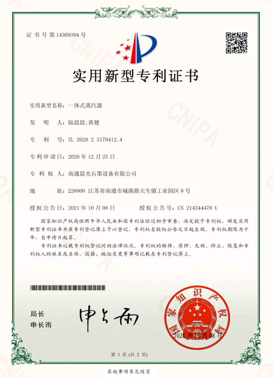 实用新型专利 :一体式蒸汽器 专利号:ZL 2020 2 3178412.4