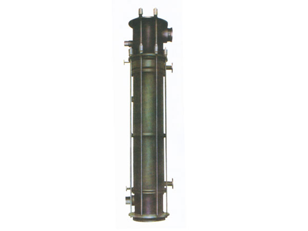 本设备采用单元换热块拼接结构,换热块之间采用聚四氟乙烯O形圈或膨胀PTFE密封,设备整体加装压力弹簧作热胀冷缩的自动补偿机械。相对于YKA圆块孔式换热器,本设备顶部加装吸收塔节,底部加装气液分离器。